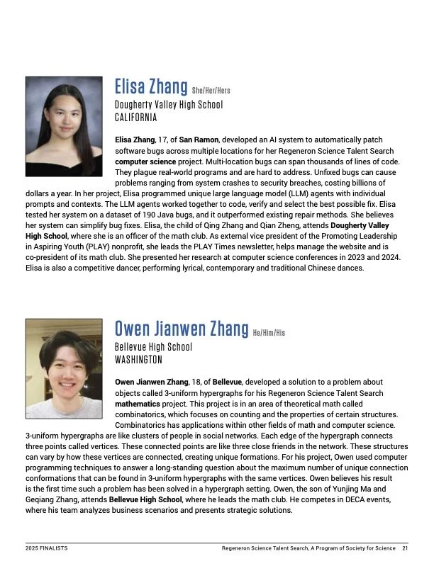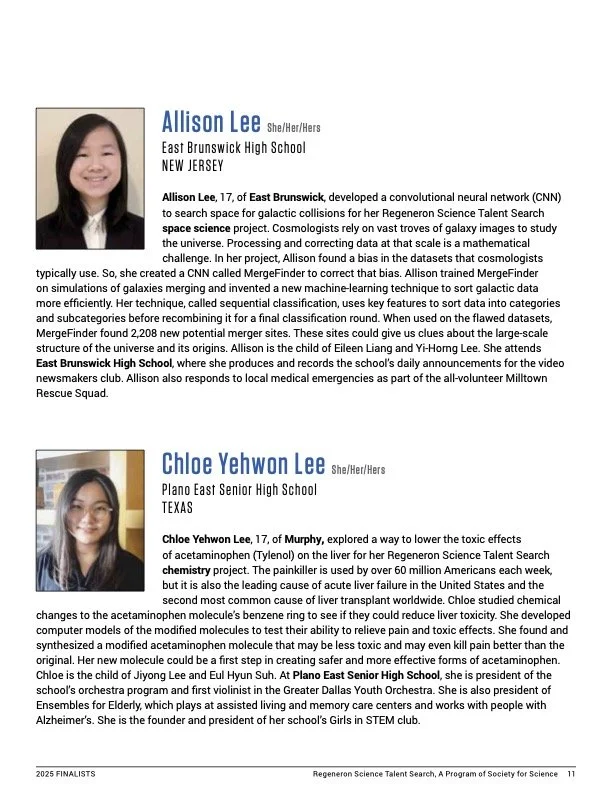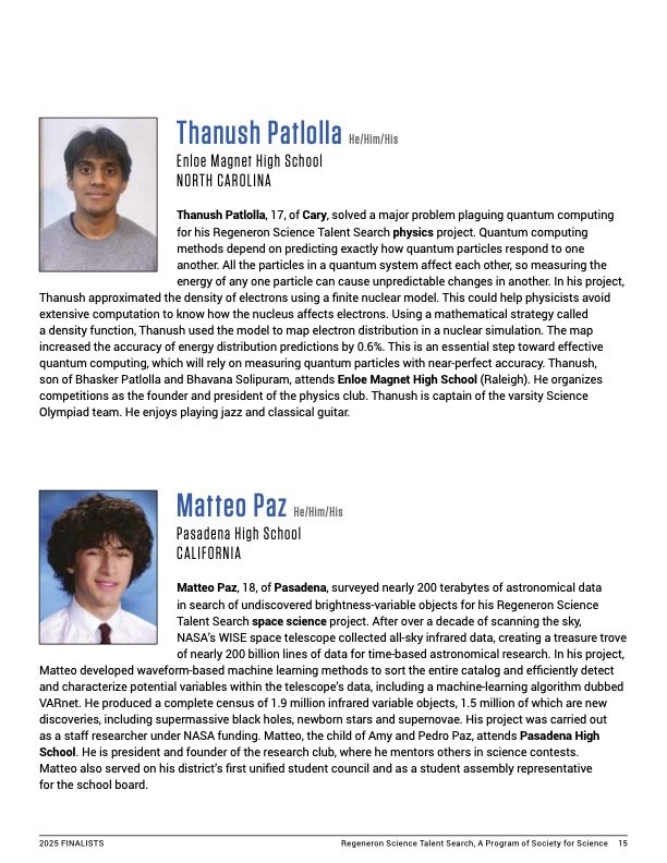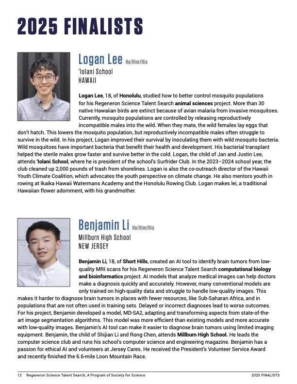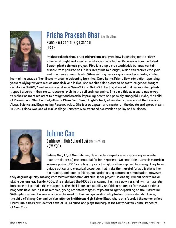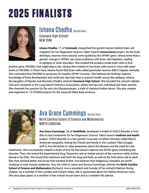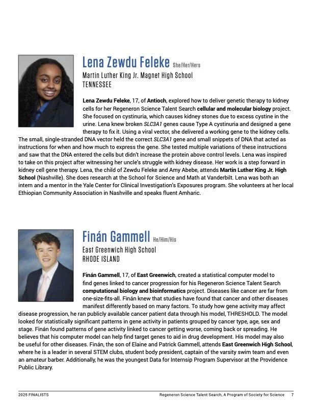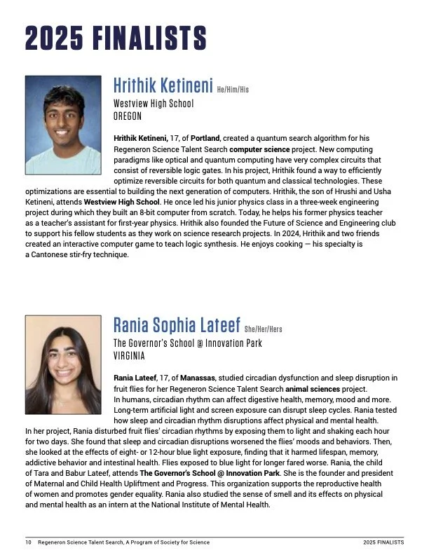 Case Study: Regeneron Science Talent Search Finalist Bios